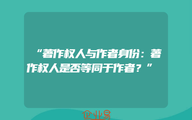 - “著作权人与作者身份:著作权人是否等同于作者?”