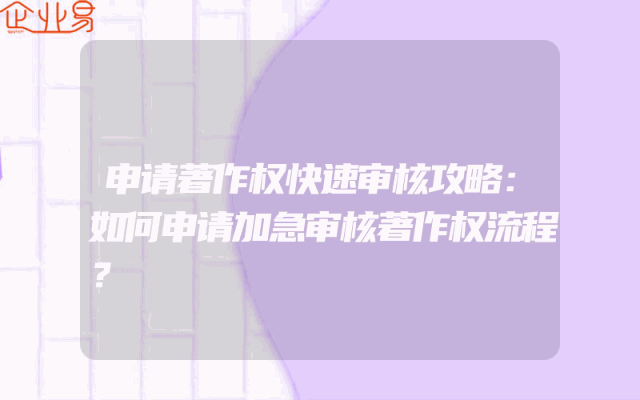 - 申请著作权快速审核攻略:如何申请加急审核著作权流程?