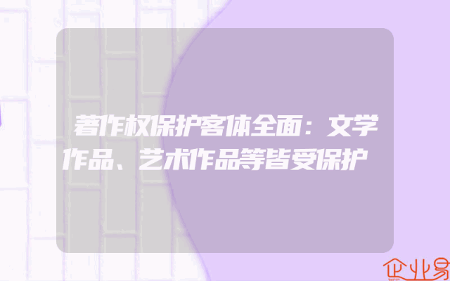 - 著作权保护客体全面:文学作品、艺术作品等皆受保护