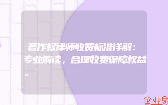 - 著作权律师收费标准详解:专业解读,合理收费保障权益。