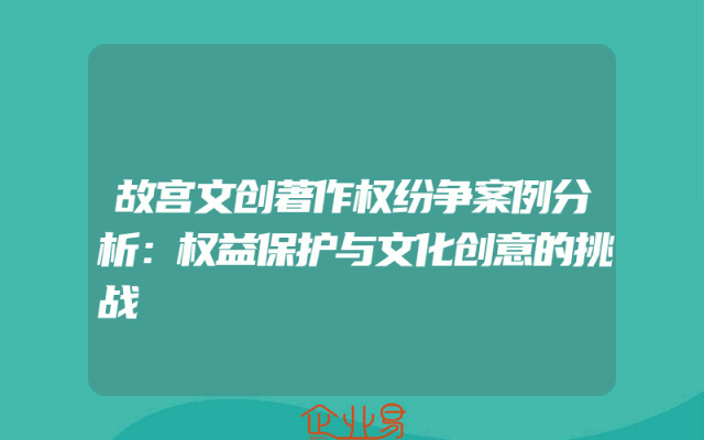 - 故宫文创著作权纷争案例分析:权益保护与文化创意的挑战