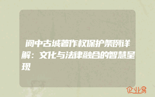 - 阆中古城著作权保护条例详解:文化与法律融合的智慧呈现