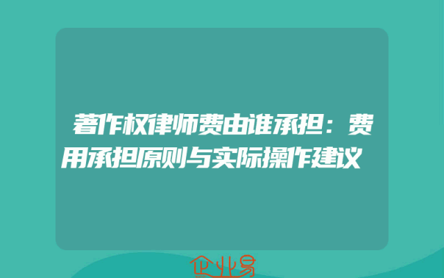 - 著作权律师费由谁承担:费用承担原则与实际操作建议