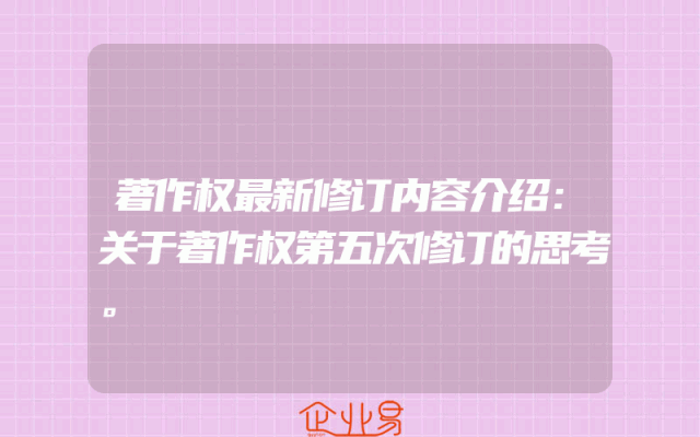 - 著作权最新修订内容介绍:关于著作权第五次修订的思考。