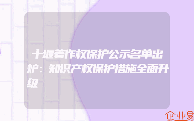 - 十堰著作权保护公示名单出炉:知识产权保护措施全面升级