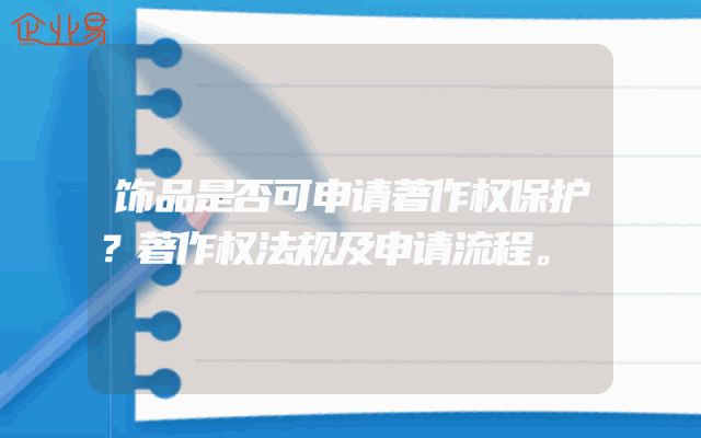 - 饰品是否可申请著作权保护?著作权法规及申请流程。