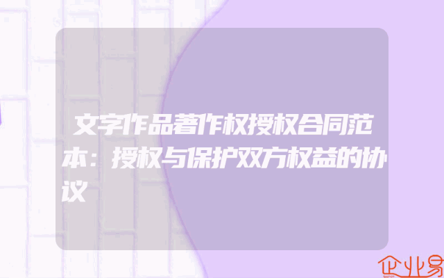 - 文字作品著作权授权合同范本:授权与保护双方权益的协议