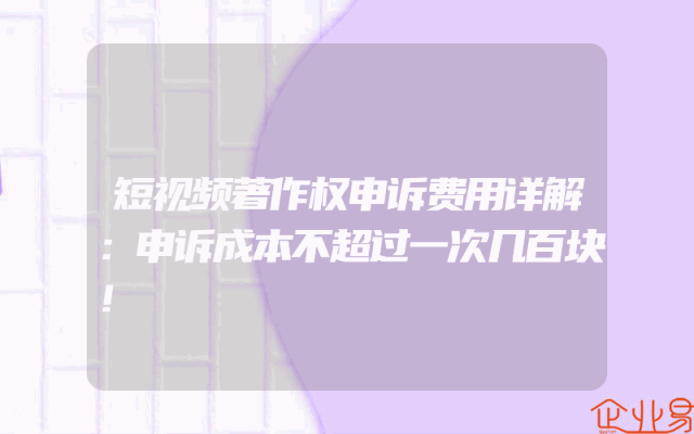 - 短视频著作权申诉费用详解:申诉成本不超过一次几百块!