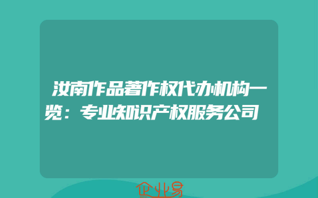 - 汝南作品著作权代办机构一览:专业知识产权服务公司