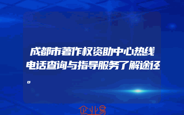 - 成都市著作权资助中心热线电话查询与指导服务了解途径。
