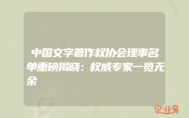 - 中国文字著作权协会理事名单重磅揭晓:权威专家一览无余