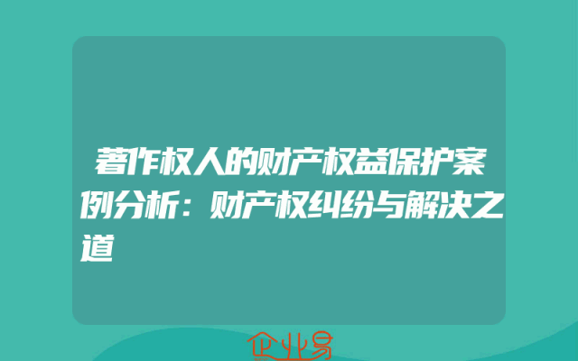 - 著作权人的财产权益保护案例分析:财产权纠纷与解决之道