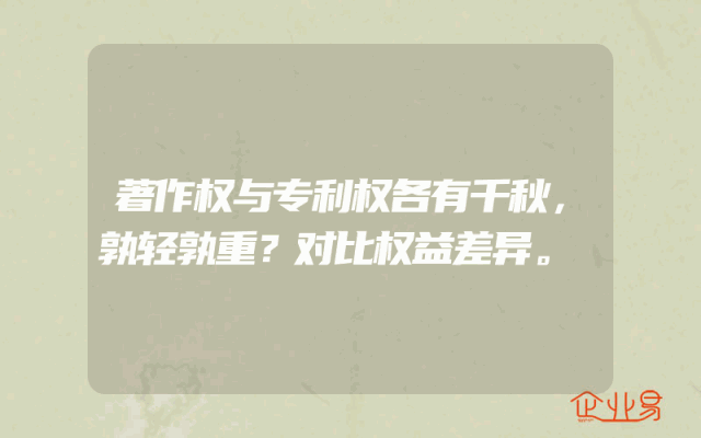- 著作权与专利权各有千秋,孰轻孰重?对比权益差异。