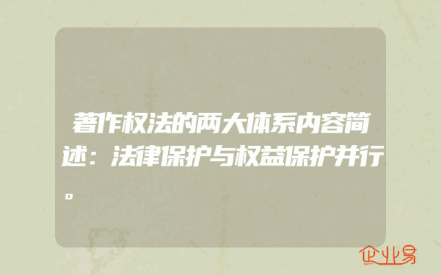- 著作权法的两大体系内容简述:法律保护与权益保护并行。