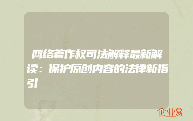 - 网络著作权司法解释最新解读:保护原创内容的法律新指引