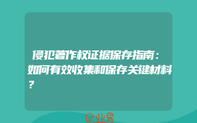- 侵犯著作权证据保存指南:如何有效收集和保存关键材料?