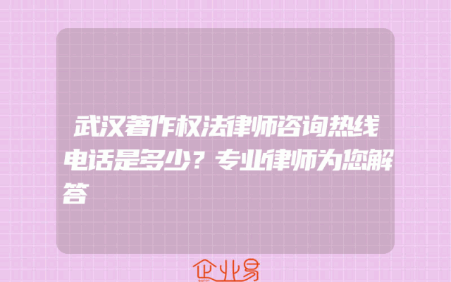 - 武汉著作权法律师咨询热线电话是多少?专业律师为您解答