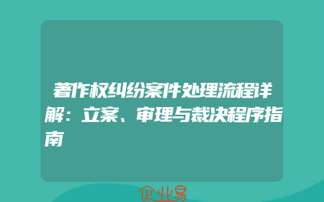 - 著作权纠纷案件处理流程详解:立案、审理与裁决程序指南