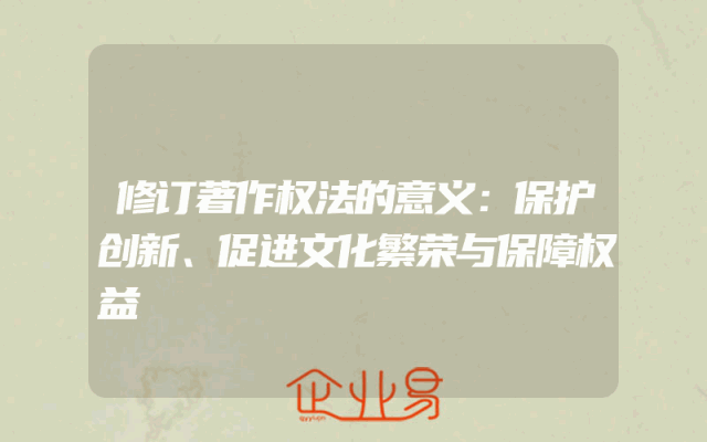 - 修订著作权法的意义:保护创新、促进文化繁荣与保障权益