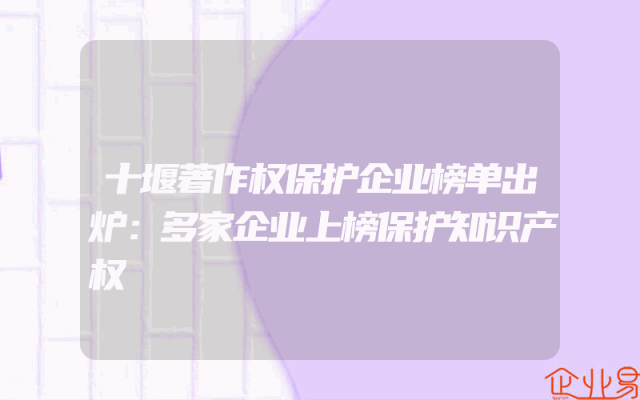 - 十堰著作权保护企业榜单出炉:多家企业上榜保护知识产权