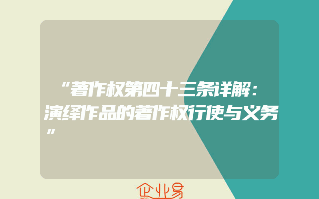 - “著作权第四十三条详解:演绎作品的著作权行使与义务”