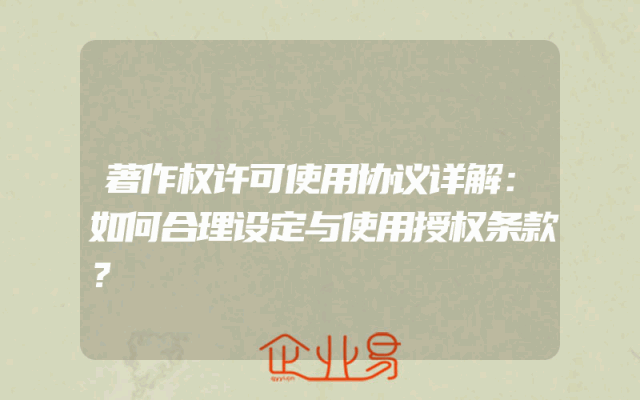 - 著作权许可使用协议详解:如何合理设定与使用授权条款?