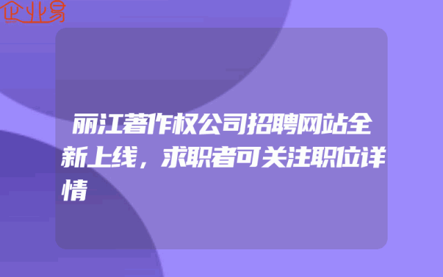 - 丽江著作权公司招聘网站全新上线,求职者可关注职位详情