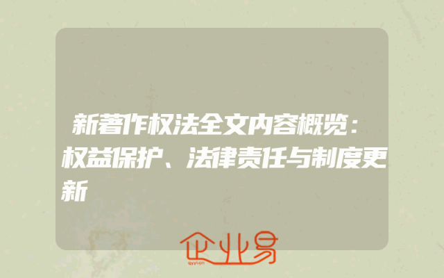 - 新著作权法全文内容概览:权益保护、法律责任与制度更新