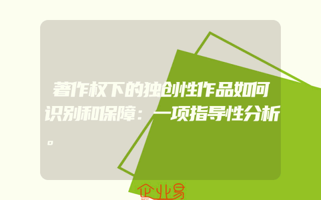 - 著作权下的独创性作品如何识别和保障:一项指导性分析。