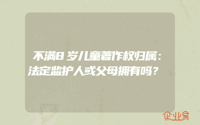- 不满8岁儿童著作权归属:法定监护人或父母拥有吗?