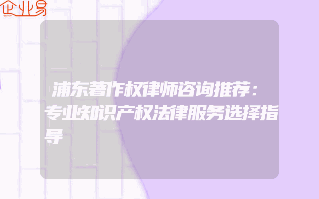 - 浦东著作权律师咨询推荐:专业知识产权法律服务选择指导