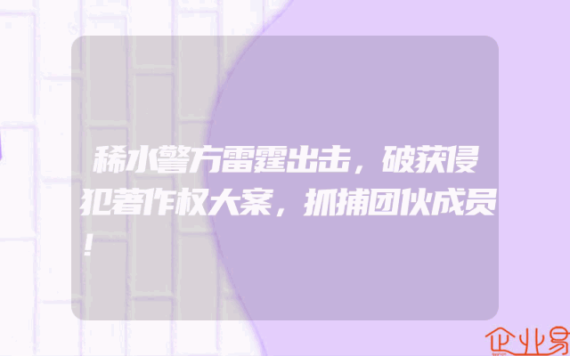 - 稀水警方雷霆出击,破获侵犯著作权大案,抓捕团伙成员!