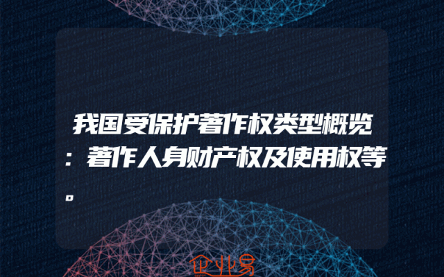 - 我国受保护著作权类型概览:著作人身财产权及使用权等。