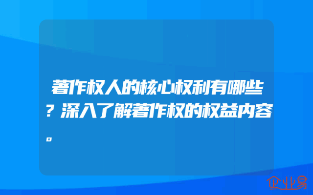 - 著作权人的核心权利有哪些?深入了解著作权的权益内容。