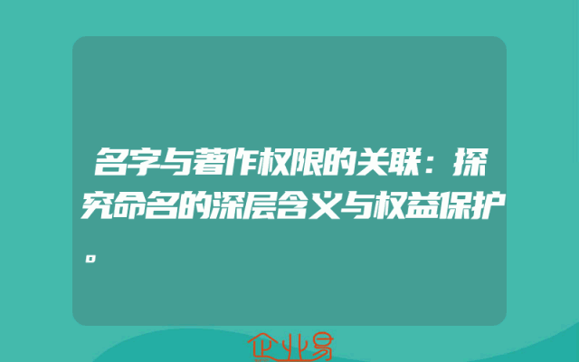 - 名字与著作权限的关联:探究命名的深层含义与权益保护。
