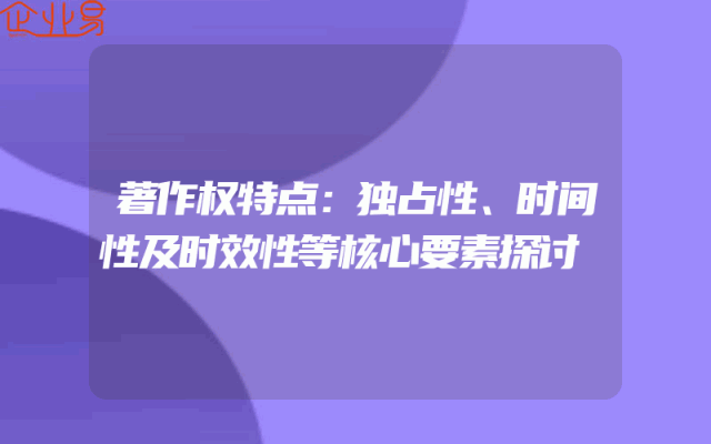 - 著作权特点:独占性、时间性及时效性等核心要素探讨