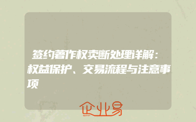 - 签约著作权卖断处理详解:权益保护、交易流程与注意事项