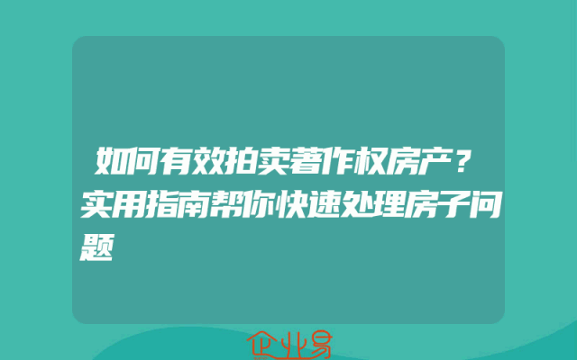 - 如何有效拍卖著作权房产?实用指南帮你快速处理房子问题