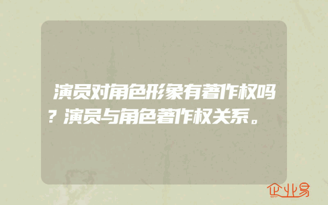 - 演员对角色形象有著作权吗?演员与角色著作权关系。