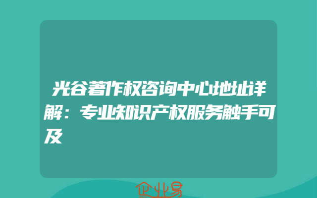 - 光谷著作权咨询中心地址详解:专业知识产权服务触手可及