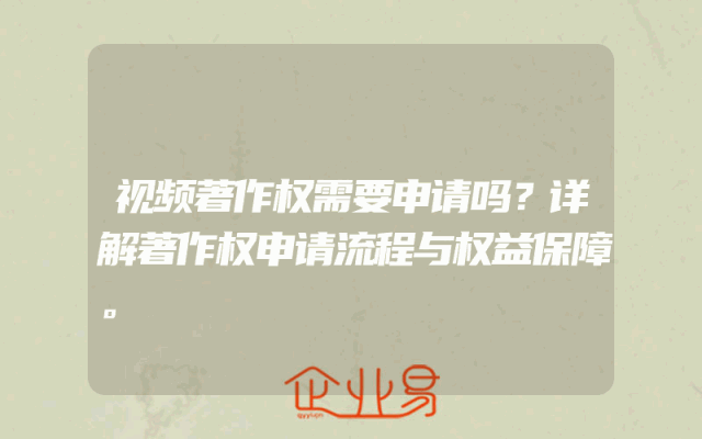 - 视频著作权需要申请吗?详解著作权申请流程与权益保障。