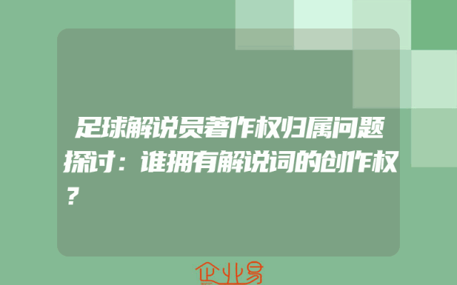 - 足球解说员著作权归属问题探讨:谁拥有解说词的创作权?
