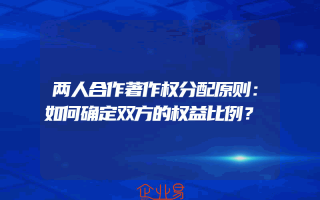 - 两人合作著作权分配原则:如何确定双方的权益比例?