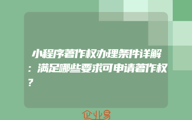 - 小程序著作权办理条件详解:满足哪些要求可申请著作权?