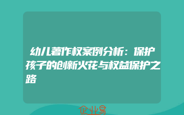 - 幼儿著作权案例分析:保护孩子的创新火花与权益保护之路