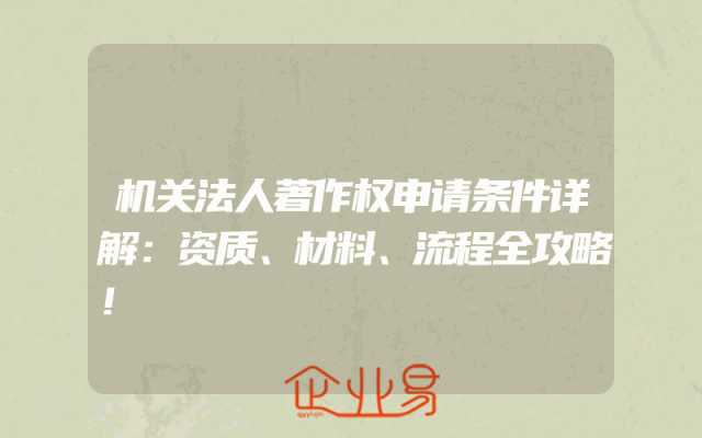 - 机关法人著作权申请条件详解:资质、材料、流程全攻略!