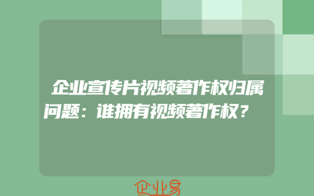 - 企业宣传片视频著作权归属问题:谁拥有视频著作权?