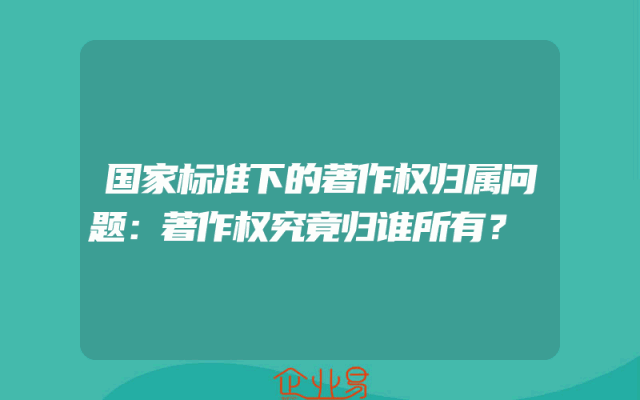- 国家标准下的著作权归属问题:著作权究竟归谁所有?