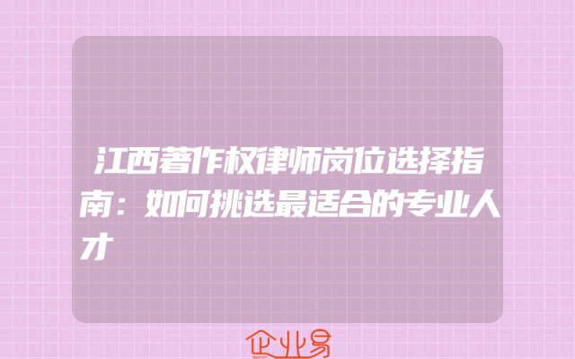 - 江西著作权律师岗位选择指南:如何挑选最适合的专业人才
