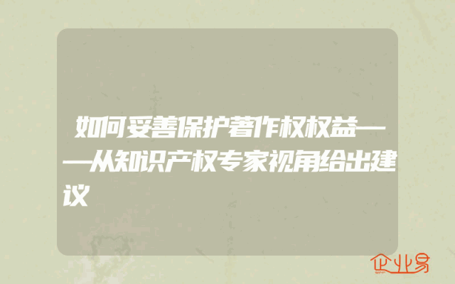 - 如何妥善保护著作权权益——从知识产权专家视角给出建议